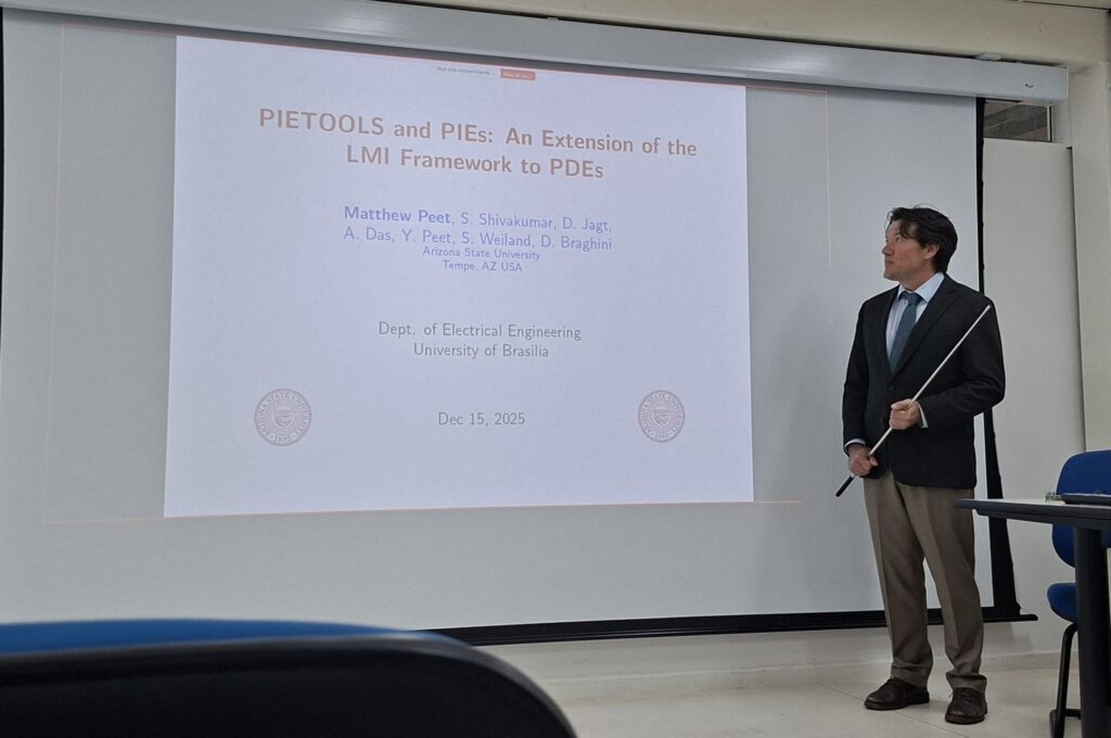 A visita ocorreu a convite do professor Eduardo Stockler Tognetti, do Departamento de Engenharia Elétrica da UnB, que recentemente retornou de estágio pós-doutoral na Arizona State University sob a supervisão do professor Matthew Peet. Atualmente, os pesquisadores mantêm cooperação científica em temas relacionados às abordagens apresentadas nas palestras.